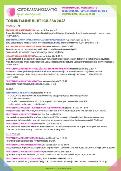 Kuukausiohjelma huhtikuu 2026